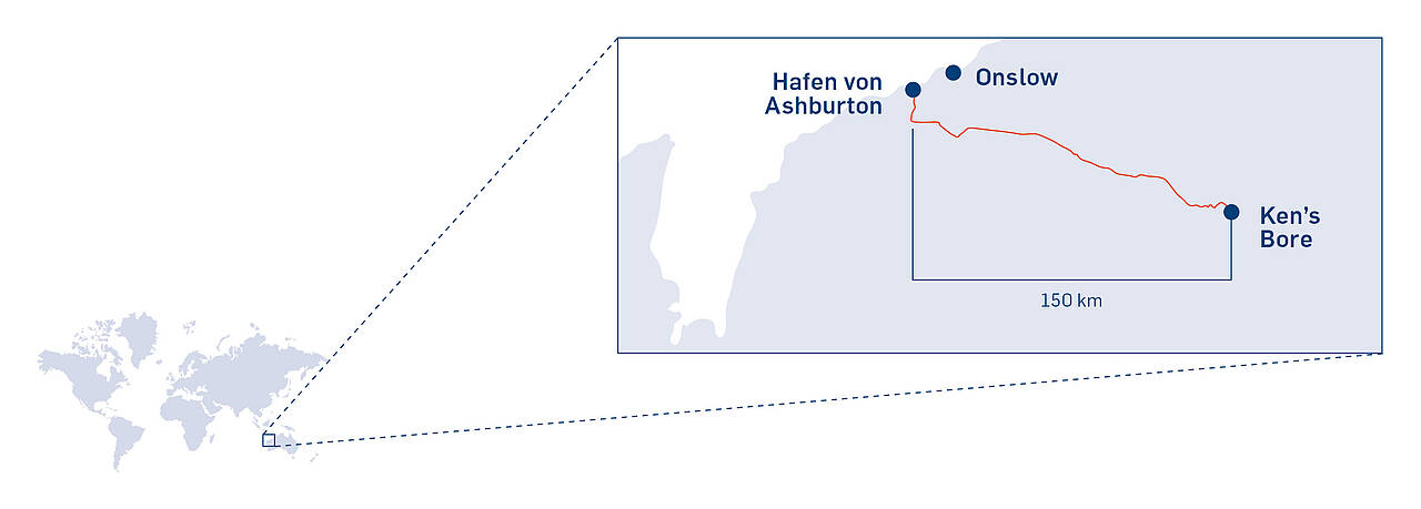 Inmitten der abgelegenen Weiten der Pilbara-Region in Westaustralien, wo rote Sanddünen und zerklüftete Felsformationen die Landschaft prägen, wird eines der größten und fortschrittlichsten Eisenerzprojekte Australiens umgesetzt: das Onslow-Iron-Projekt von Mineral Resources (MinRes). Mittels modernster Technologien und einer „Mine to Ship“-Transportkette soll das Projekt jährlich rund 35 Millionen Tonnen Erzvorkommen über einen Zeitraum von mehr als 30 Jahren fördern – und dabei gleichzeitig den ökologischen Fußabdruck minimieren sowie die Effizienz im Bergbau steigern.