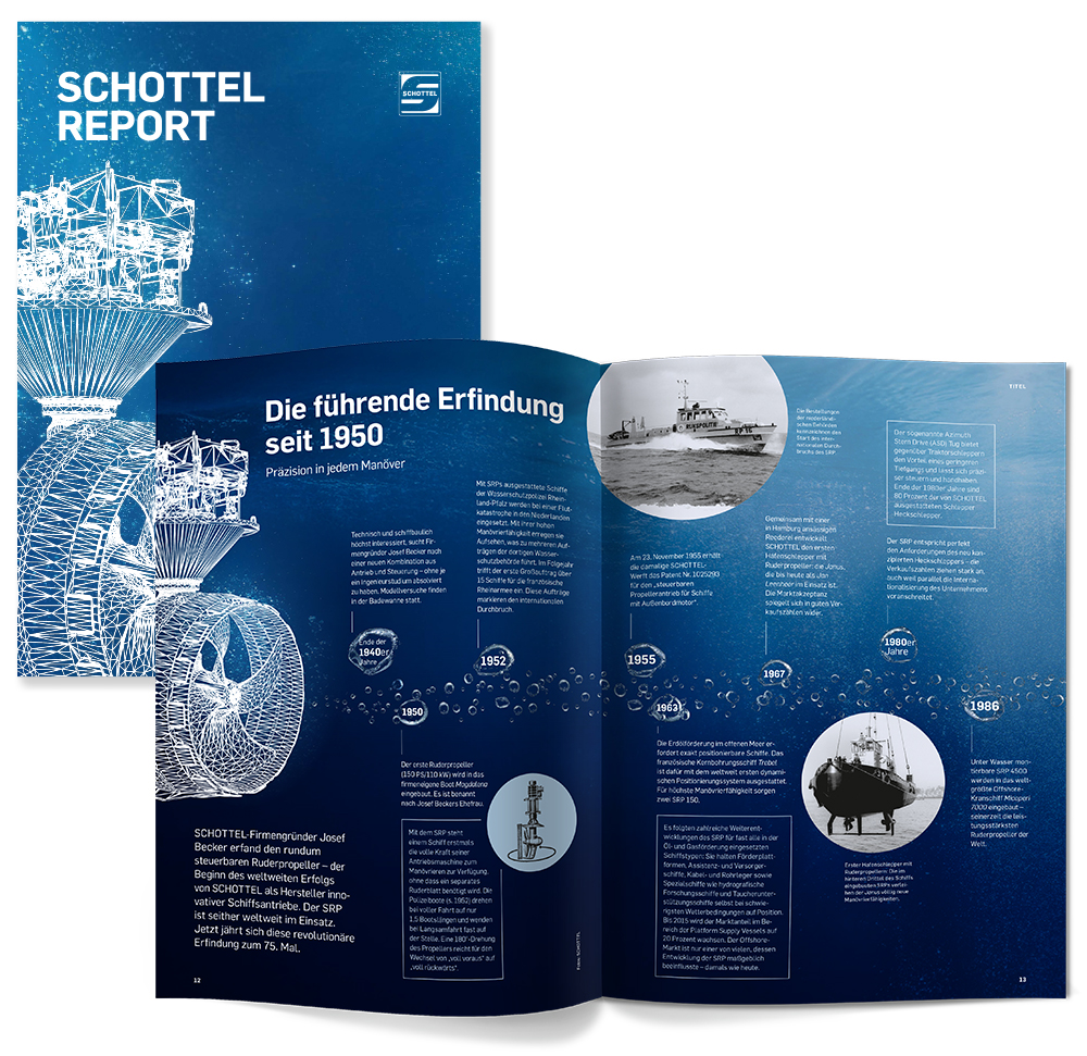 SCHOTTEL-Firmengründer Josef Becker entwickelte mit dem rundum steuerbaren Ruderpropeller eine bahnbrechende Innovation, die die maritime Antriebstechnik nachhaltig prägen sollte. In unserer Titelgeschichte tauchen wir ein in 75 Jahre SCHOTTEL RudderPropeller und zeigen, wie diese Erfindung bis heute die Zukunft der Schiffsantriebe gestaltet.